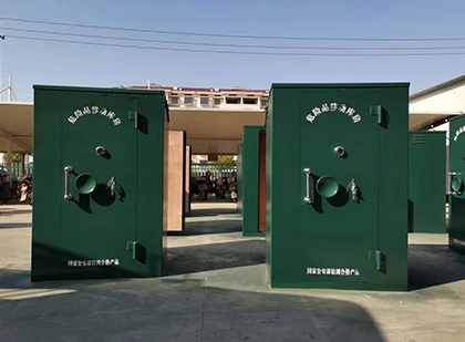 动式炸药库应运而生,它是民用爆炸物品库房的一种,包含可拆装拼接式活动库房,车载配套整体移动库房,移动车载东港雷管箱,活动式车载东港炸药柜